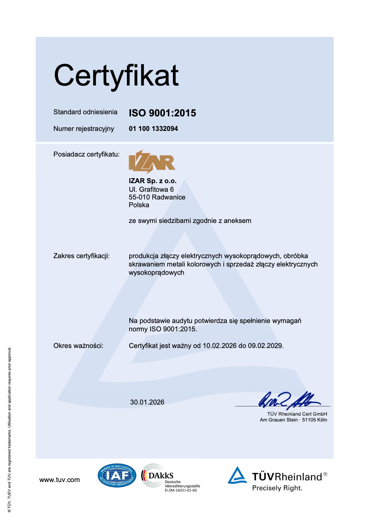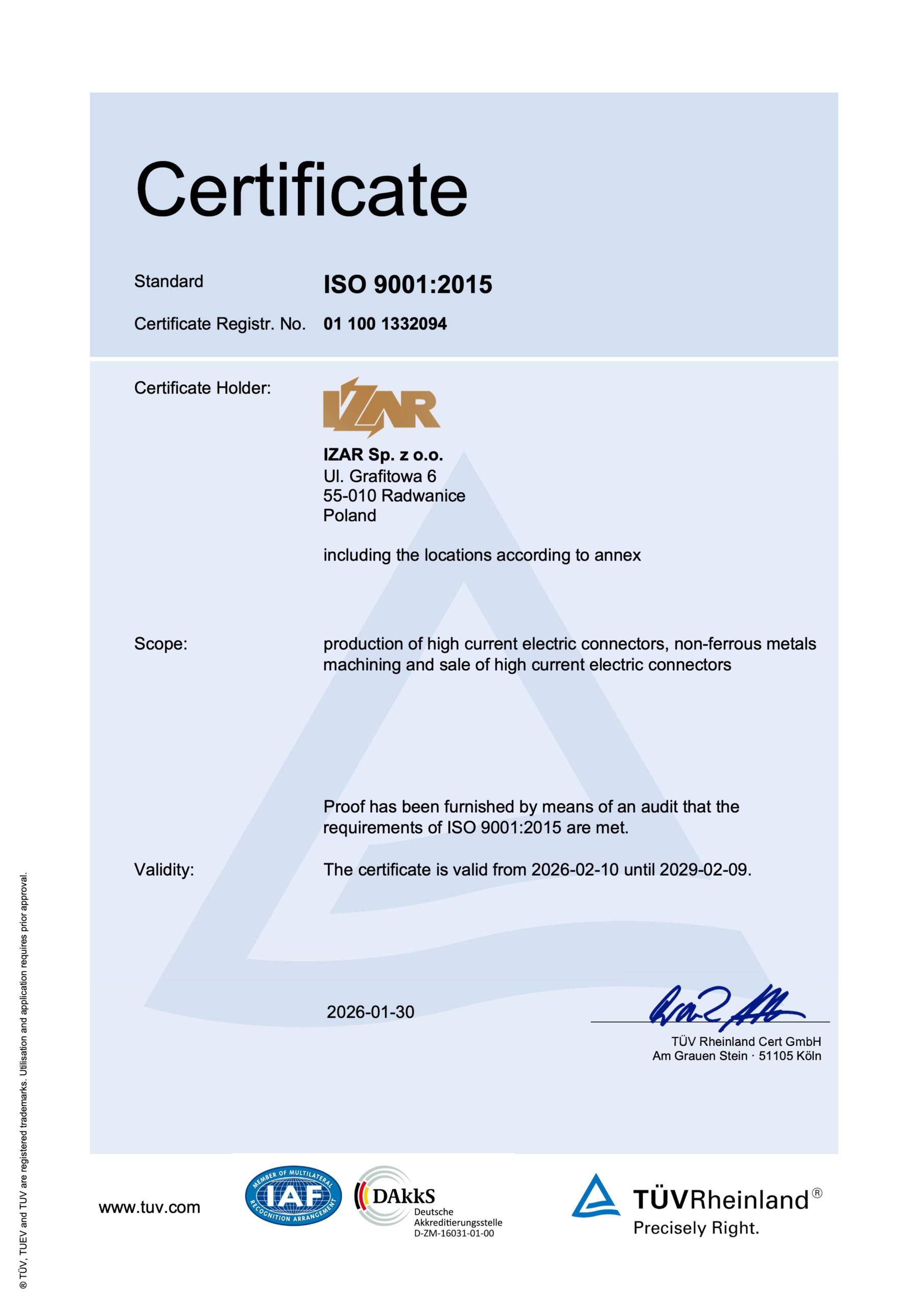 CERTYFIKAT JAKOŚCI ISO9001
